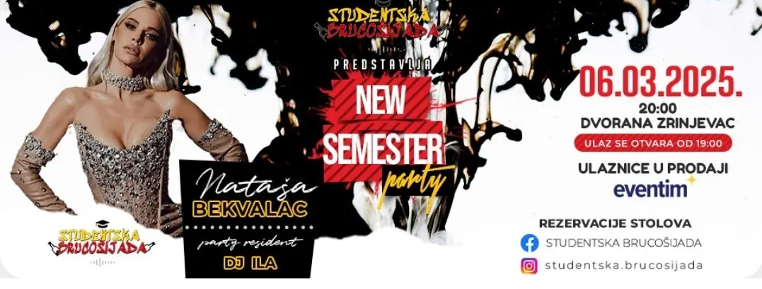 Ako ste student i tražite najbolji način za proslavu početka novog semestra, Studentska Brucošijada 2025 donosi vam vrhunski New Semester Party koji se ne propušta! Ove godine zabava seli u Dvoranu Zrinjevac u Osijeku i donosi nastup regionalne zvijezde Nataše Bekvalac, uz podršku rezidentnog DJ-a ILA.