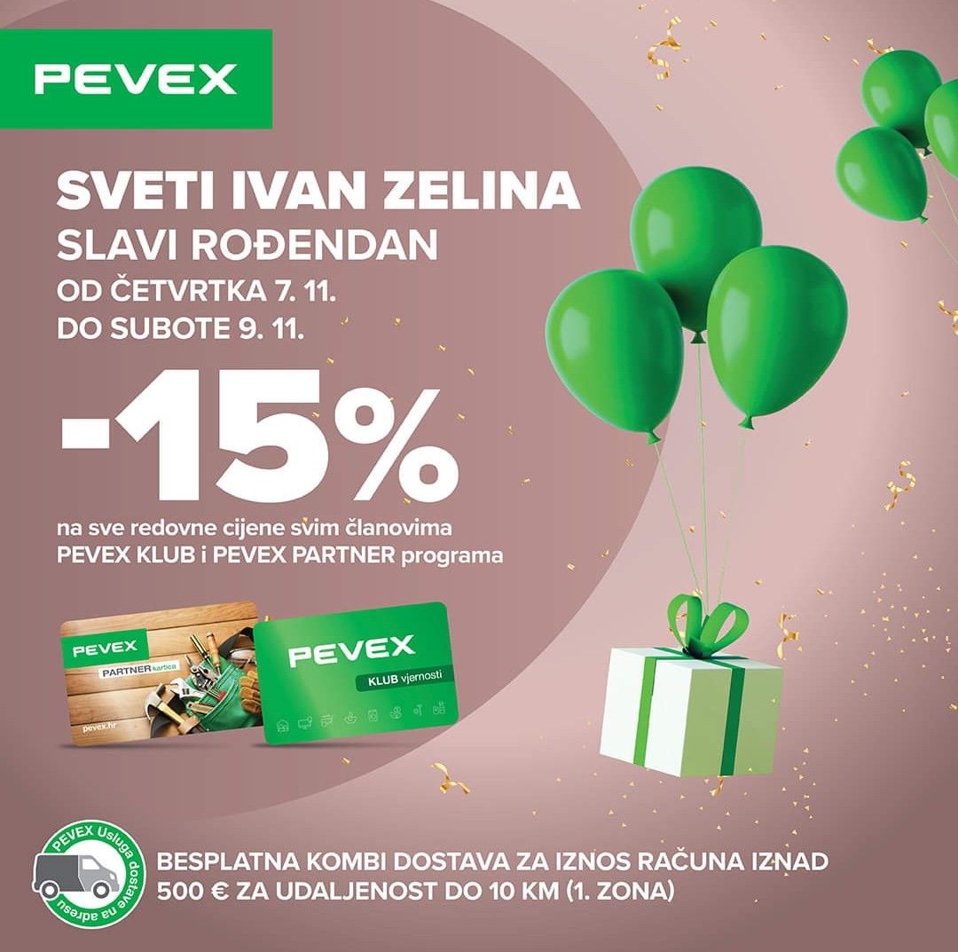 Pevex Sveti Ivan Zelina slavi Rođendan uz 15% Popusta na Sve Redovne CijenePevex trgovina u Svetom Ivanu Zelini slavi svoj rođendan od 7. do 9. studenog i poziva sve članove Pevex Klub i Pevex Partner programa da iskoriste ekskluzivan popust od 15% na sve redovne cijene. Ova posebna rođendanska akcija omogućava vam da kupite željene proizvode po sniženim cijenama, bilo da opremate dom, vrt ili planirate renovaciju.