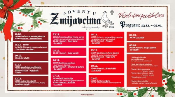 Advent u Zmijavcima 2024: Program, Koncerti i Događanja Advent u Zmijavcima 2024: Glazba, Zabava i Božićna Čarolija Advent u Zmijavcima 2024. donosi bogat...