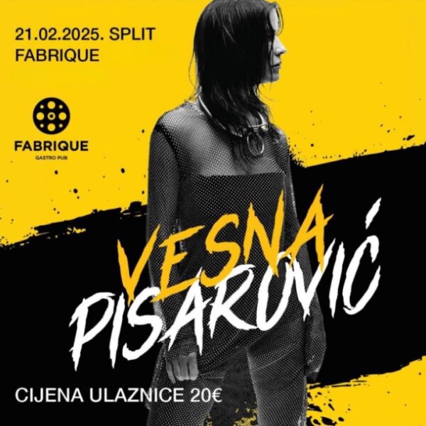 Ne propustite koncert Vesne Pisarović u Splitu! Nastupa u Fabrique Pubu 21. veljače 2025., a ulaznice su dostupne po cijeni od 20€. Osigurajte...