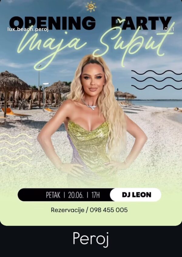 Ne propustite spektakularan Opening Party na Lux Beachu u Peroju! U petak, 20. lipnja od 17h nastupaju Maja Šuput i DJ Leon. Rezervirajte...