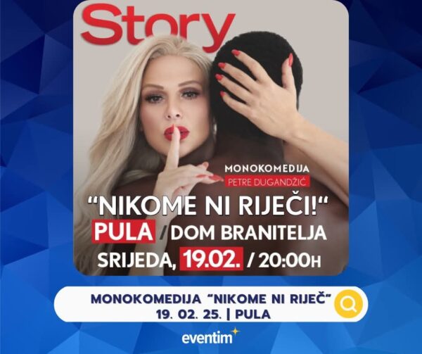 SEO ključne riječi: monokomedija Nikome ni riječ, Petra Dugandžić monokomedija, Dom branitelja Pula događanja, kazalište Pula veljača 2025, stand-up Pula 2025, ulaznice za...