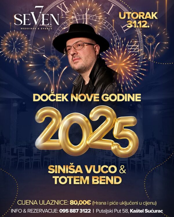 Planirate nezaboravan doček Nove godine? Seven Wedding & Events u Kaštel Sućurcu priprema spektakularnu večer uz Sinišu Vucu i Totem Bend! Ovaj ekskluzivni...