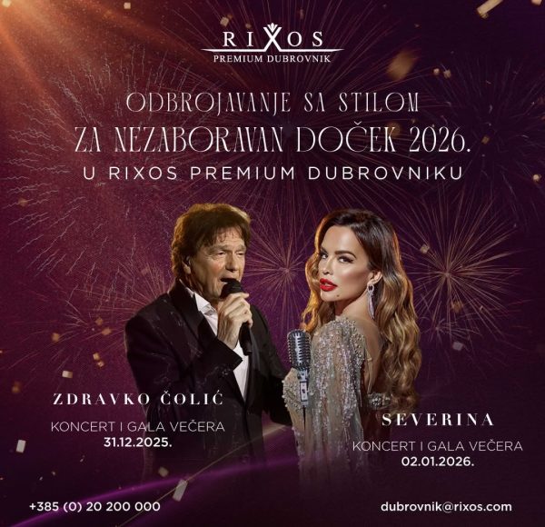 Rezervirajte nezaboravan doček Nove 2026. u Rixos Premium Dubrovniku! Uživajte 31.12. uz Zdravka Čolića i 2.1. uz Severinu, dvije glamurozne večeri glazbe i...