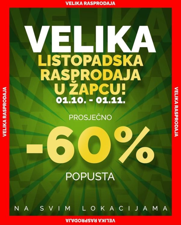 Iskoristi veliku listopadsku rasprodaju u Žabac Food Outlet trgovinama! Cijeli mjesec uživaj u prosječnom popustu od -60% na sve proizvode. Pronađi najbliži Žabac...