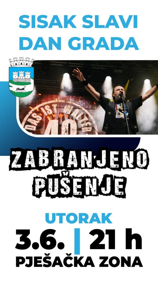 Sisak obilježava Dan grada koncertom grupe Zabranjeno pušenje 3. lipnja u 21 h u pješačkoj zoni. Doznajte sve detalje o besplatnom glazbenom spektaklu...