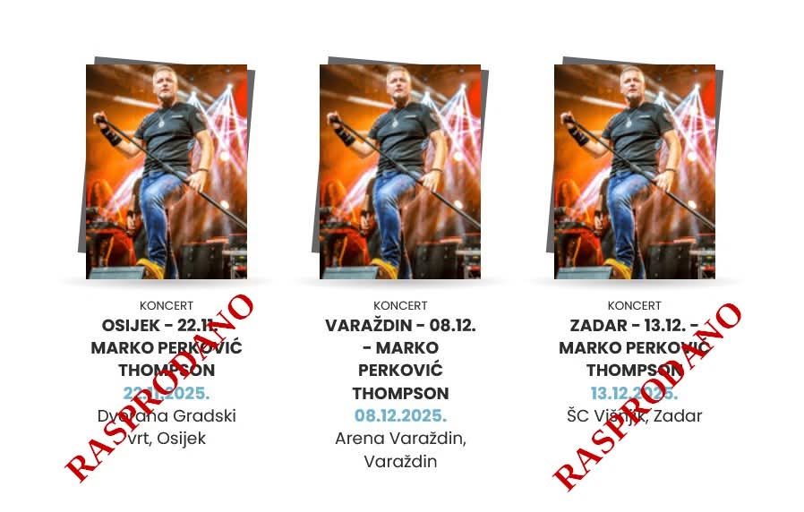 Ulaznice za dodatne koncerte Marka Perkovića Thompsona u Osijeku i Zadru rasprodane – u Varaždinu preostalo još malo!