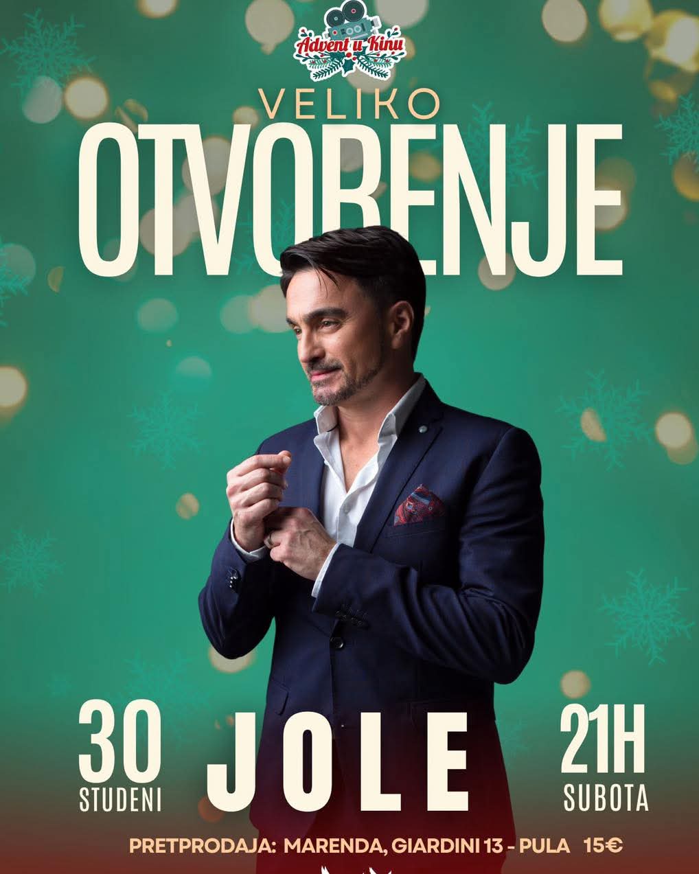 Advent u Kinu, jedno od najiščekivanijih adventskih događanja u Puli, otvara svoja vrata 30. studenog u 21 sat velikim koncertom popularnog hrvatskog pjevača Jolea! Ova nezaboravna večer obilježit će službeni početak blagdanske čarolije, nudeći posjetiteljima savršenu kombinaciju vrhunske glazbe i blagdanskog ugođaja.Lokacija i UlazniceVeliko otvorenje Adventa održava se u Kinu, a ulaznice su već u pretprodaji na lokaciji Marenda, Giardini 13, Pula, po cijeni od samo 15 eura. Požurite jer je interes velik, a broj ulaznica ograničen!Zašto ne propustiti Jolea?Jole, poznat po svojim hitovima poput “Kada žene tulumare” i “Duša od papira”, svojim nastupima uvijek garantira odličnu atmosferu i vrhunsku zabavu. Njegov energični stil i talent za interakciju s publikom čine svaki koncert posebnim.Što donosi Advent u Kinu?Osim Joleovog koncerta, Advent u Kinu nudi bogat program tijekom prosinca s raznovrsnim sadržajem za sve uzraste. Blagdanski ukrasi, topla atmosfera i ukusne adventske delicije bit će dostupni na svakoj lokaciji.Planirajte svoju večerNe propustite priliku da uživate u početku adventskog razdoblja uz omiljenog izvođača i fantastičan ambijent. Rezervirajte ulaznice već danas i osigurajte svoje mjesto na najboljoj zabavi u Puli!