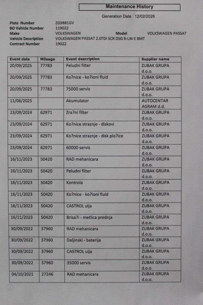 Passat je poznat po visokoj razini udobnosti, stabilnosti na cesti i ekonomičnoj potrošnji goriva, zbog čega je čest izbor vozača koji traže pouzdan automobil za svakodnevnu vožnju ili duža putovanja. Održavana mehanika, kvalitetna izrada interijera i provjerena Volkswagen tehnologija čine ovaj model sigurnim izborom na tržištu rabljenih automobila.
