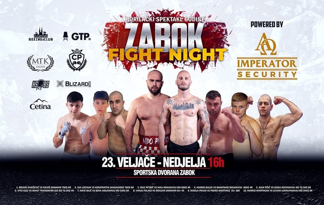 Ljubitelji borilačkih sportova, pripremite se za spektakularnu večer boksa i adrenalina! Zabok Fight Night, jedan od najiščekivanijih borilačkih događaja godine, održat će se 23. veljače (nedjelja) u 16:00 sati u Sportskoj dvorani Zabok.