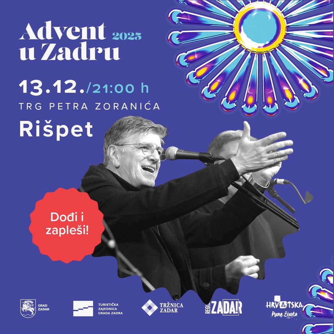 Blagdanski ugođaj u Zadru dodatno će biti obogaćen adventskim kućicama, mirisima kuhanog vina, fritula i ostalih zimskih delicija, dok će središnji gradski trg postati prava pozornica dobre energije i zajedništva. Koncert Rišpeta savršeno se uklapa u adventsku priču grada koji je posljednjih godina postao jedna od najpoželjnijih zimskih destinacija na Jadranu.