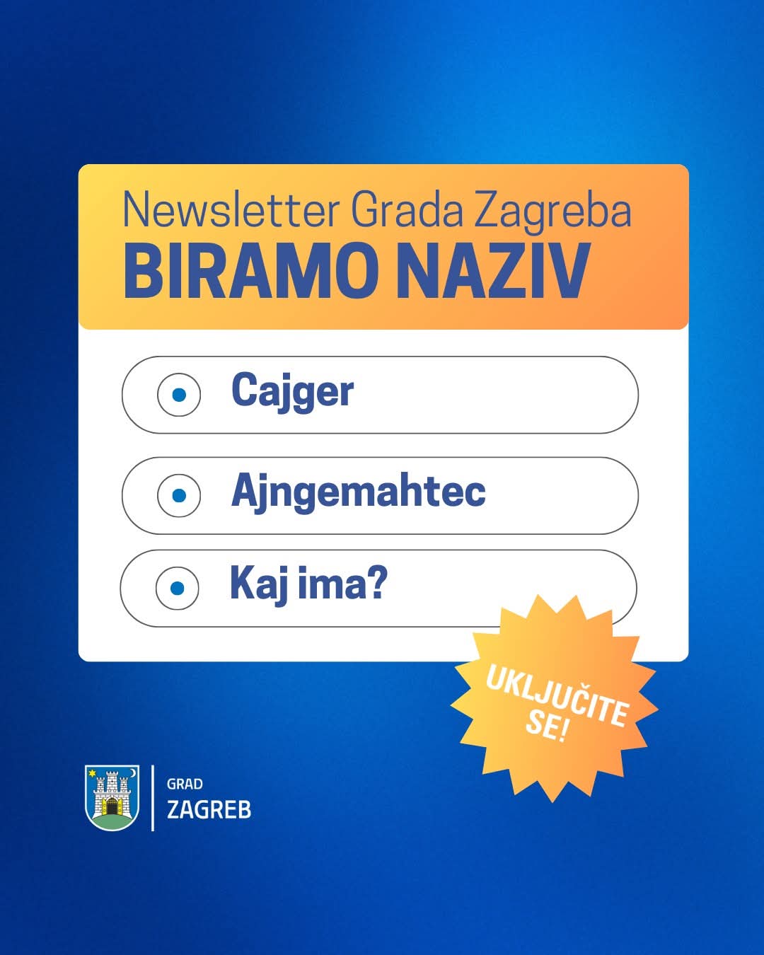 Zagreb pokreće novi tjedni newsletter koji će građanima donositi najvažnije informacije iz svih dijelova grada, a o njegovu nazivu odlučuju upravo – Zagrepčani. Grad je predstavio tri kreativna prijedloga i otvorio anketu u kojoj svaki građanin može dati svoj glas do četvrtka, 11. prosinca u 20 sati. Prvi newsletter stiže već sljedeći tjedan, a cilj je stvoriti moderan, pregledan i prijateljski kanal komunikacije između Grada Zagreba i građana.