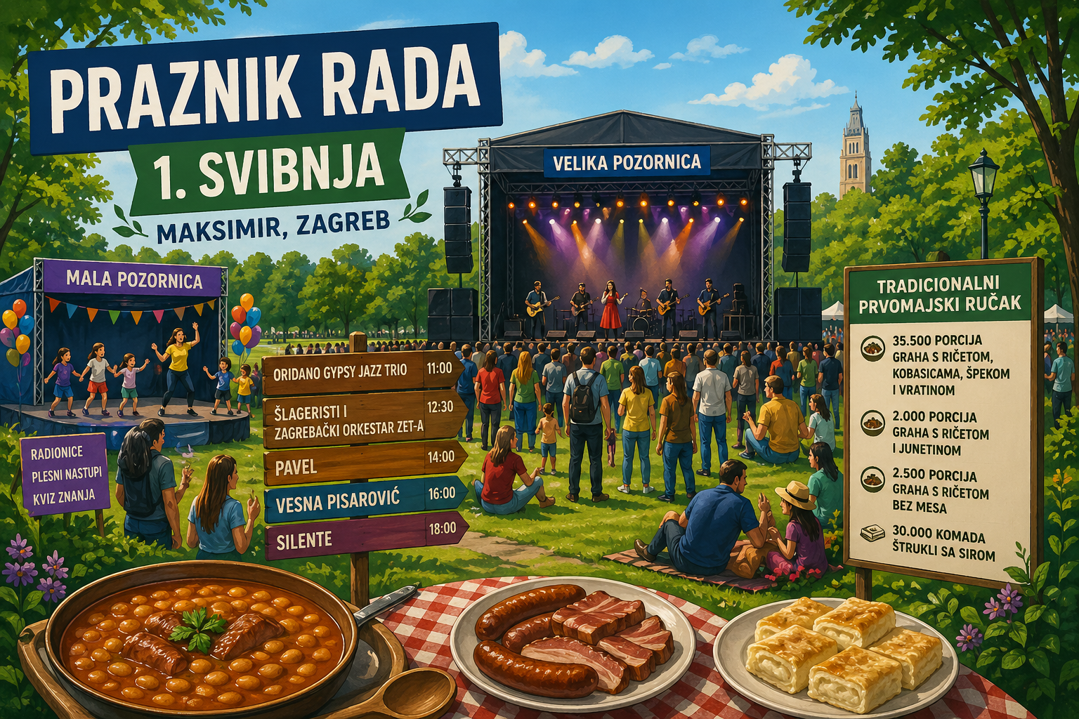 Zagreb 1. svibnja slavi Praznik rada u Maksimiru uz koncerte, 35.000 porcija graha, štrukle i program za djecu. Važne sigurnosne upute.