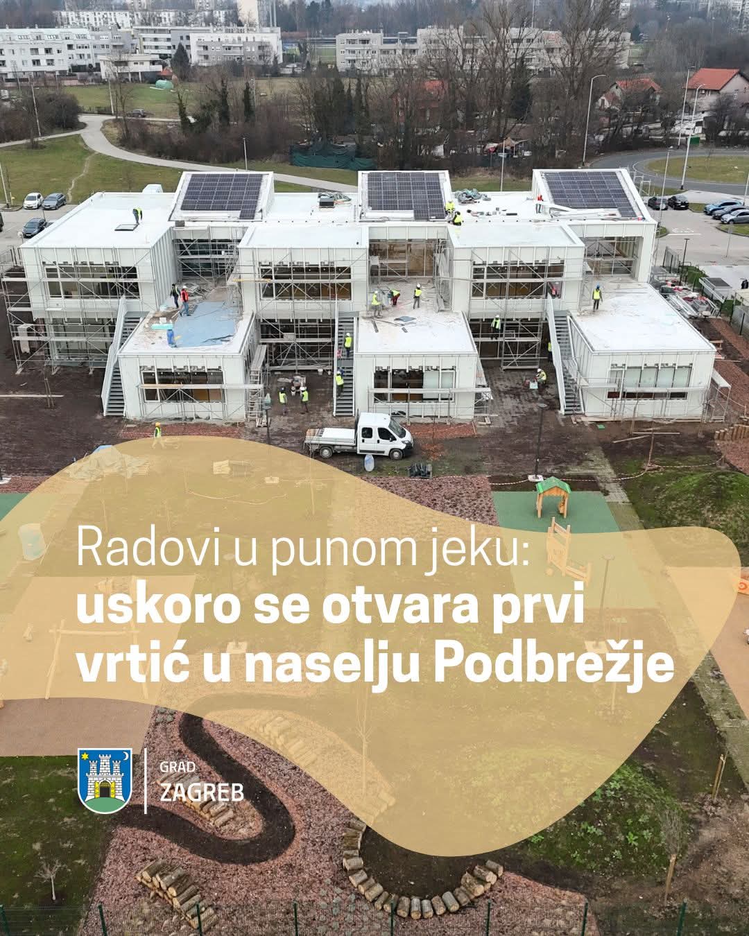 U Zagrebu se nastavlja najveći investicijski ciklus u odgoj i obrazovanje u povijesti grada, a jedan od najvažnijih projekata ulazi u samu završnicu. Radovi na prvom dječjem vrtiću u naselju Podbrežje trenutačno su u punom jeku, a dovršetak objekta i njegovo otvaranje planirani su za travanj ove godine.