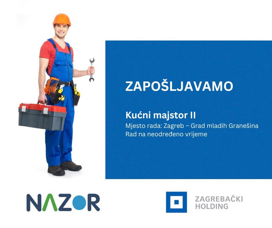 Zagrebački holding d.o.o., podružnica Vladimir Nazor, raspisao je natječaj za radno mjesto kućni majstor II na neodređeno vrijeme. Ako imate iskustva u održavanju objekata i tražite stabilan posao u Zagrebu, ovo je odlična prilika za vas!